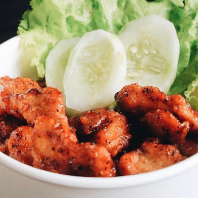 Ayam yg digoreng tepung krispi ditambah sambal pedas manis...hemmm...yummii.